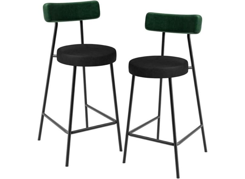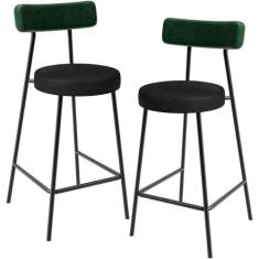 Kit 02 Banquetas Baixa Bar Cozinha Sala De Jantar Milão L02 Facto Verde Musgo Preto