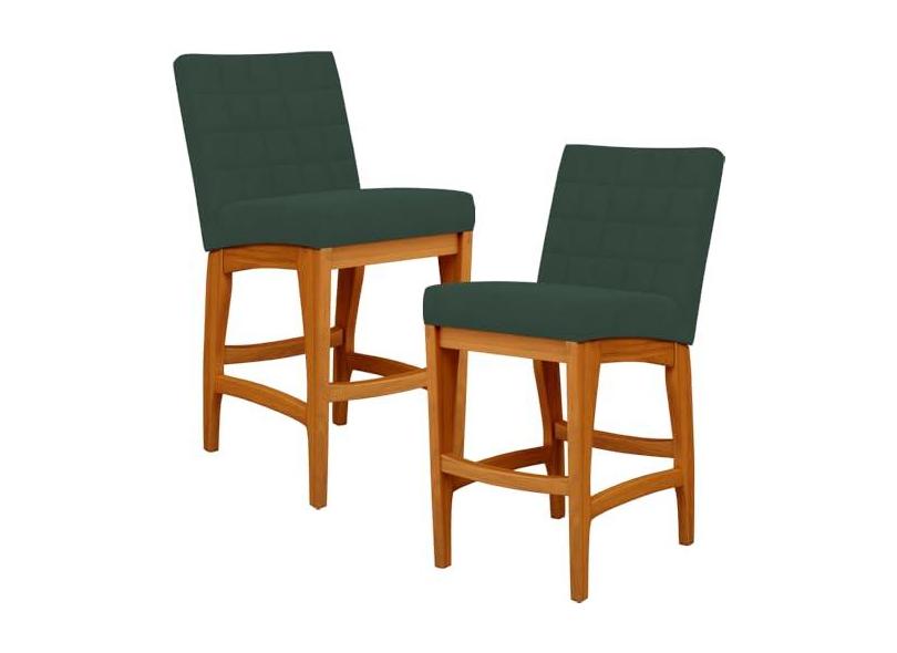Kit 02 Banquetas Baixa Cozinha Bancada Bar Sala Jantar Fixa Mila L02 Suede Verde Musgo - Lyam Decor