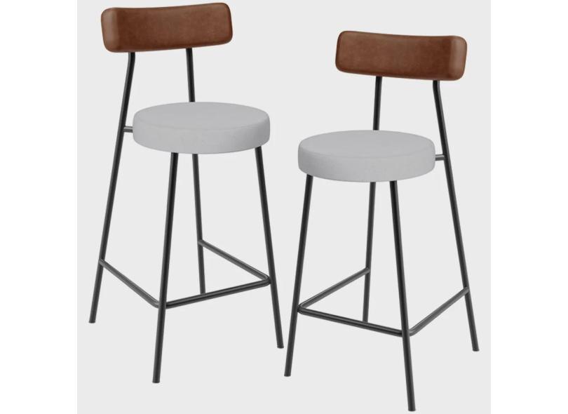 Kit 02 Banquetas Baixa Cozinha Sala De Jantar Milão L02 Couríssimo Marrom Linho Cinza - Lyam Decor