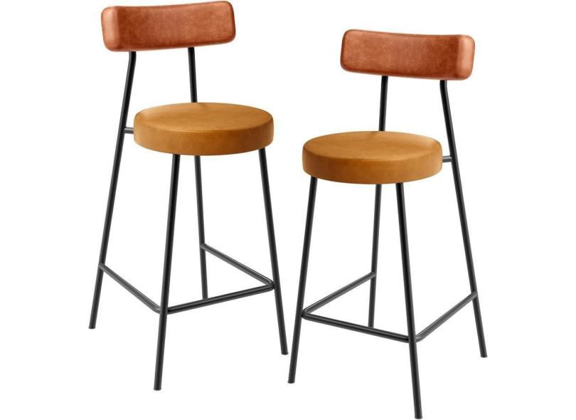 Kit 02 Banquetas Baixa Cozinha Sala Jantar Bancada Milão L02 Couríssimo Camel Whisky