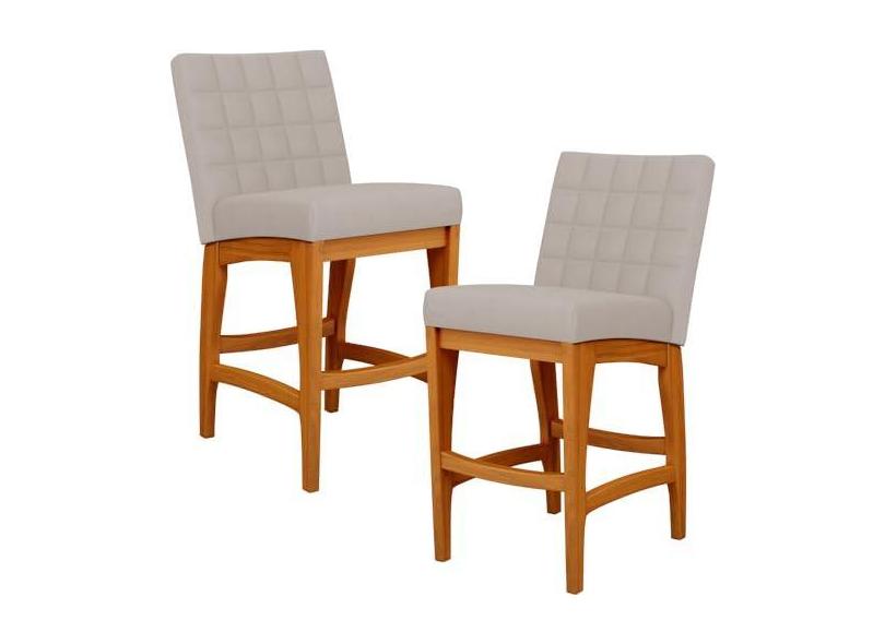 Kit 02 Banquetas Baixa Para Cozinha Bancada Bar Sala Jantar Fixa Mila L02 Linho Bege - Lyam Decor