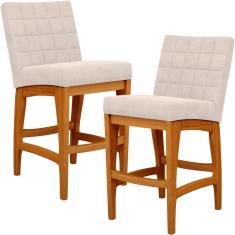 Kit 02 Banquetas Baixa Para Cozinha Bancada Bar Sala Jantar Fixa Mila L02 Suede Bege - Lyam Decor