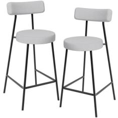 Kit 02 Banquetas Baixa Para Cozinha Sala De Jantar Bancada Milão L02 Linho Chumbo