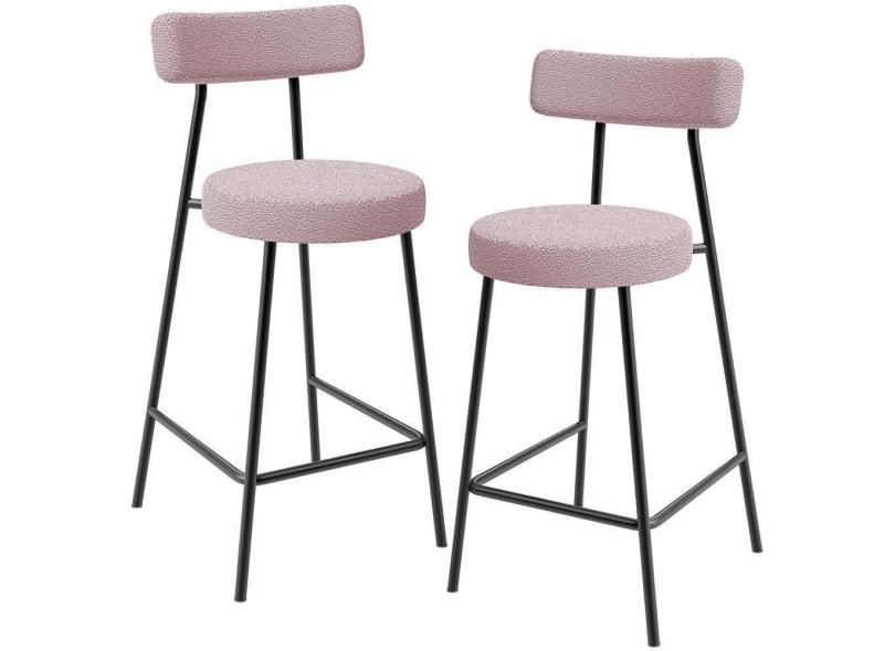 Kit 02 Banquetas Baixa Para Cozinha Sala De Jantar Bar Bancada Milão L02 Bouclê Rosê