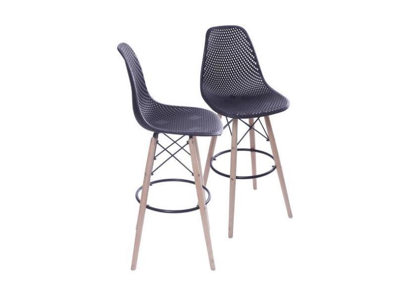 Kit 02 Banquetas Boxbit Colmeia Preta Base Madeira