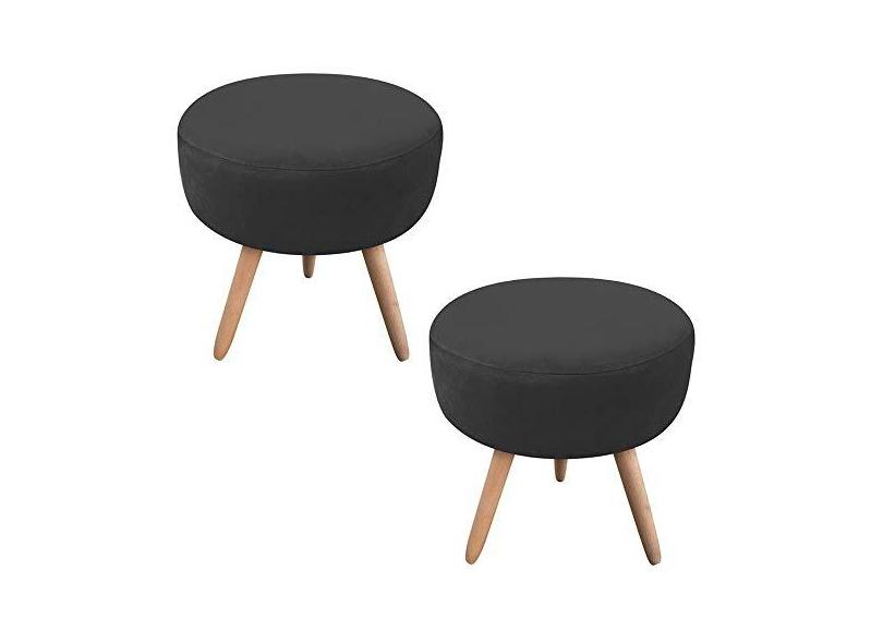 Kit 02 Puff Banqueta Berlim Redondo Suede Preto Pés Natural - D'Rossi