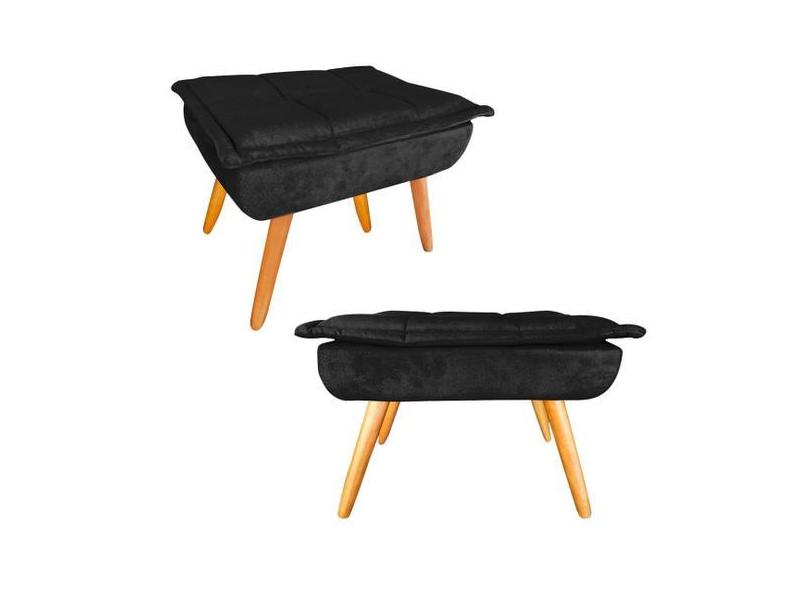 Kit 02 Puff Banqueta Opala Suede Preto Pés Castanho Retrô para Sala Qu