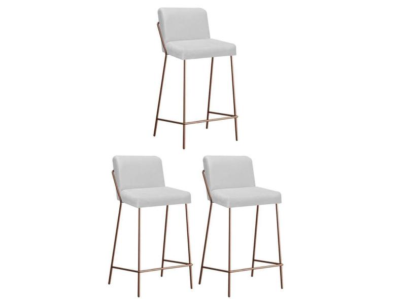 Kit 03 Banqueta Alta Com Encosto Drika Industrial Cozinha Bistrô Ferro Bronze Corino Branco - Ahazzo Móveis