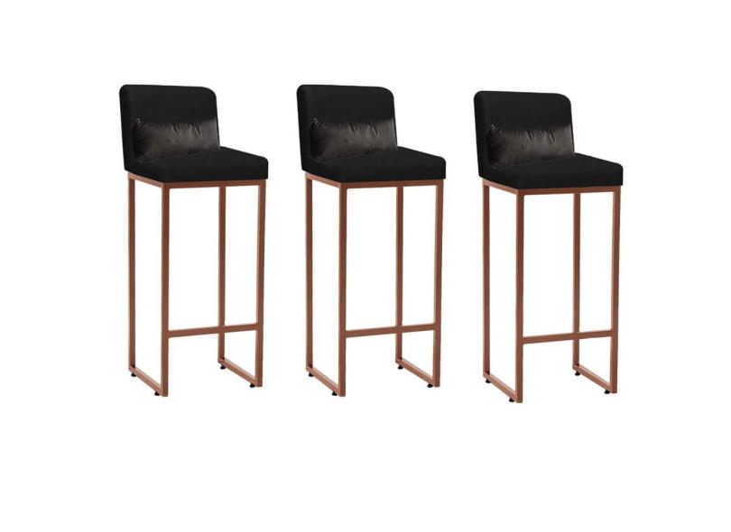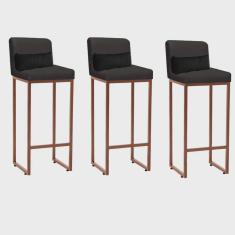 O menor preço encontrado no Brasil para Kit 03 Banqueta Alta com Encosto Lucca Industrial Cozinha Balcão Ferro Bronze Suede Preto e Almofada Cinza - Ahazzo Móveis atualmente é R$ 1.049,90.
