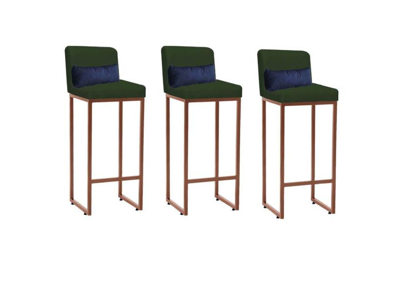 O menor preço encontrado no Brasil para Kit 03 Banqueta Alta com Encosto Lucca Industrial Cozinha Balcão Ferro Bronze Suede Verde e Almofada Azul Marinho - Ahazzo Móveis atualmente é R$ 1.049,90.