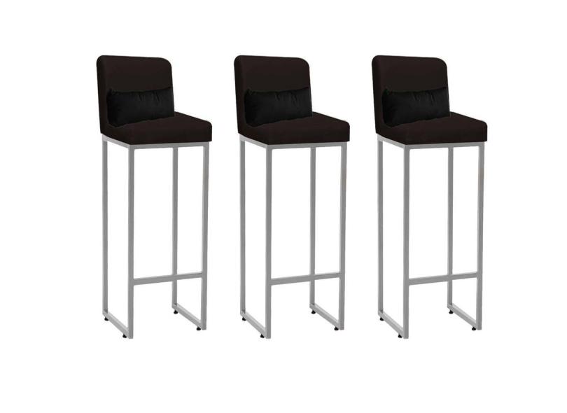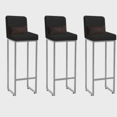 O menor preço encontrado no Brasil para Kit 03 Banqueta Alta com Encosto Lucca Industrial Cozinha Balcão Ferro Cinza Suede Marrom e Almofada Preto - Ahazzo Móveis atualmente é R$ 1.049,90.