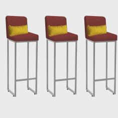 O menor preço encontrado no Brasil para Kit 03 Banqueta Alta com Encosto Lucca Industrial Cozinha Balcão Ferro Cinza Suede Vermelho e Almofada Amarelo - Ahazzo Móveis atualmente é R$ 1.049,90.