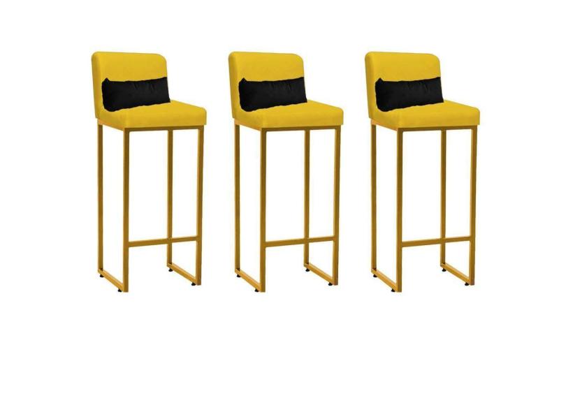 O menor preço encontrado no Brasil para Kit 03 Banqueta Alta com Encosto Lucca Industrial Cozinha Balcão Ferro Dourado Suede Amarelo e Almofada Preto - Ahazzo Móveis atualmente é R$ 1.049,90.
