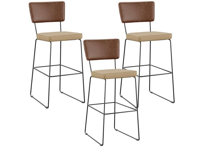 Kit 03 Banqueta Alta Cozinha Allana L02 Marrom Bege Escuro