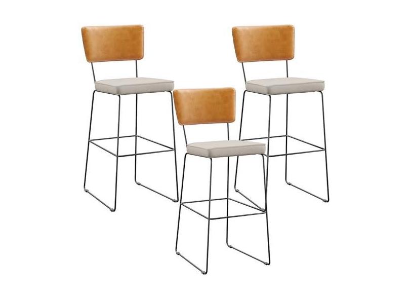 Kit 03 Banqueta Alta Cozinha Sala De Jantar Fixa Allana L02 Couríssimo Whisky Linho Cru - Lyam Decor