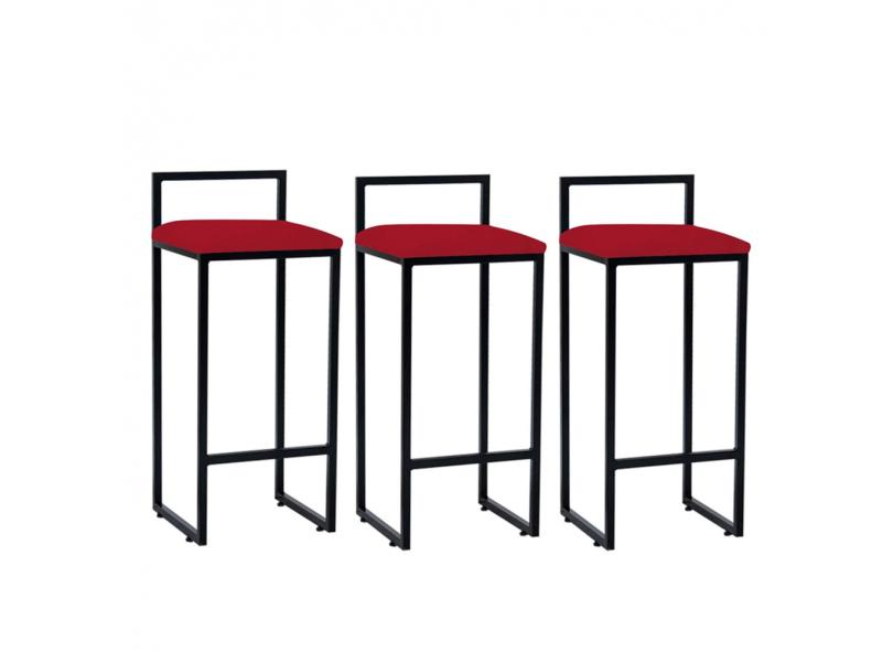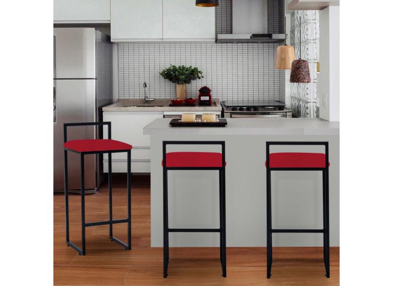 Kit 03 Banqueta Alta Lina Industrial Cozinha Bar Balcão Bistrô Ferro Corino - Ahazzo Móveis