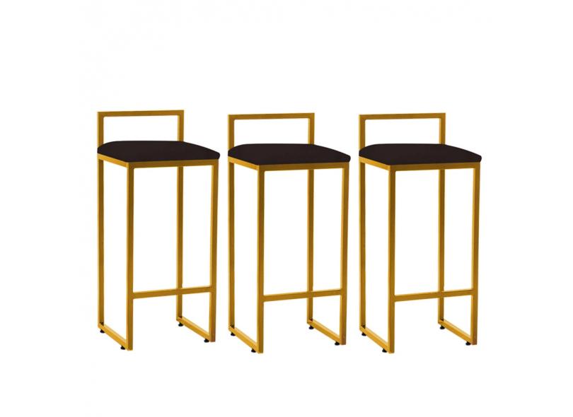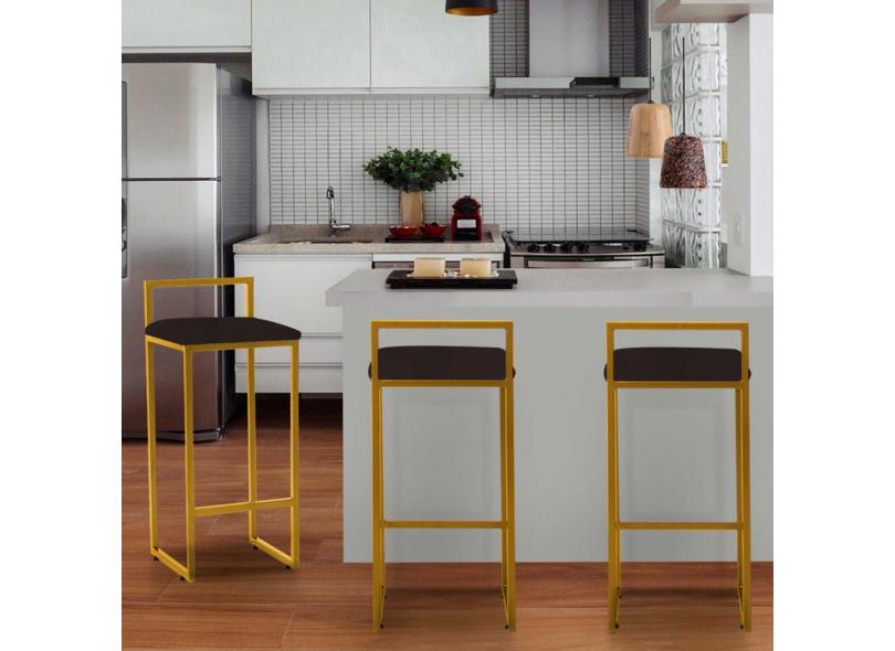 Kit 03 Banqueta Alta Lina Industrial Cozinha Bar Balcão Bistrô Ferro Suede Marrom - Ahazzo Móveis