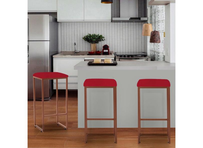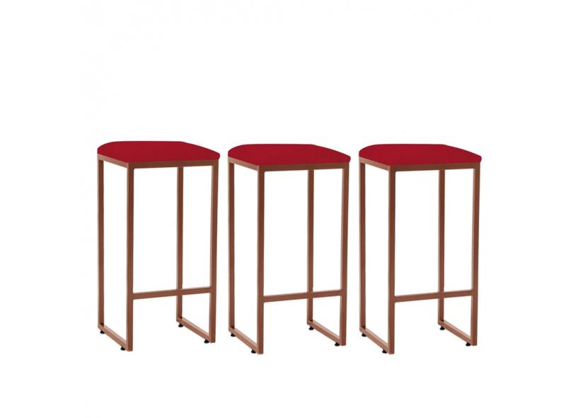 Kit 03 Banqueta Alta Lua Industrial Cozinha Bar Balcão Bistrô Ferro Bronze Corino - Ahazzo Móveis