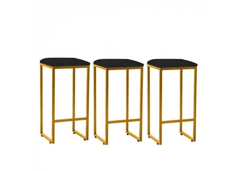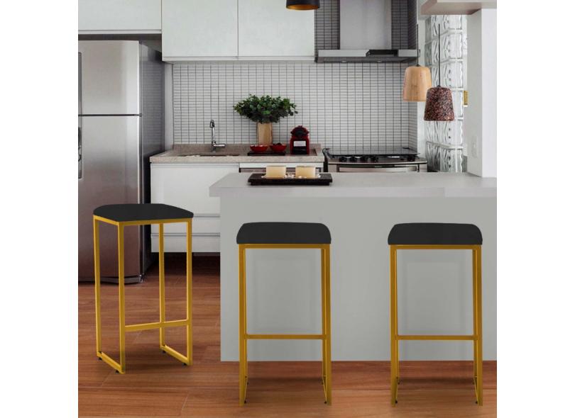 Kit 03 Banqueta Alta Lua Industrial Cozinha Bar Balcão Bistrô Ferro Corino - Ahazzo Móveis