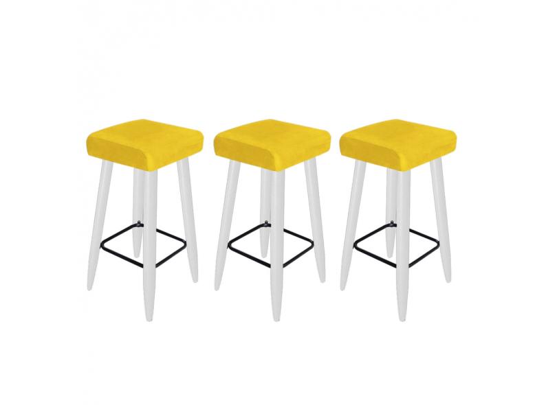Kit 03 Banqueta Alta Quadrado Luma Para Cozinha Bar Balcão Bistrô Pé Palito Suede - Ahazzo Móveis