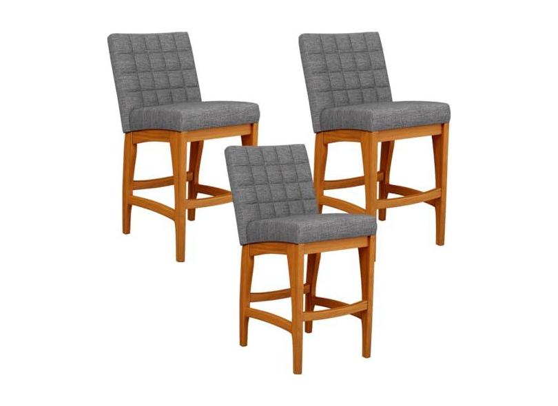 Kit 03 Banqueta Baixa Cozinha Bancada Bar Sala Jantar Fixa Mila L02 Linho Cinza Escuro - Lyam Decor