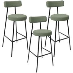 Kit 03 Banquetas Alta Bar Cozinha Sala De Jantar Estrutura Em Aço Milão L02 Bouclê Oliva - Lyam Decor