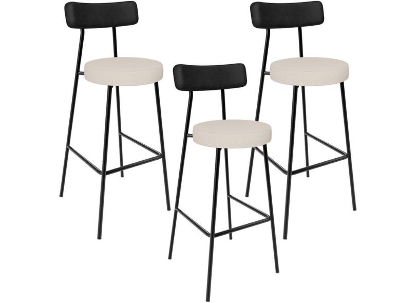 Kit 03 Banquetas Alta Bar Cozinha Sala De Jantar Milão L02 Couríssimo Preto Linho Cru