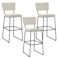 Kit 03 Banquetas Alta Base Aço Fixa Linho Champagne
