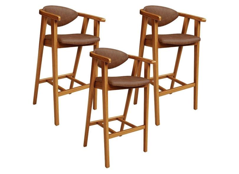 Kit 03 Banquetas Alta Cozinha Bancada Bar Sala De Jantar Fixa Cecília L02 Couríssimo Marrom