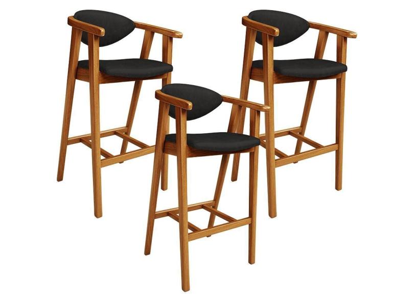 Kit 03 Banquetas Alta Cozinha Bancada Bar Sala De Jantar Fixa Cecília L02 Couríssimo Preto