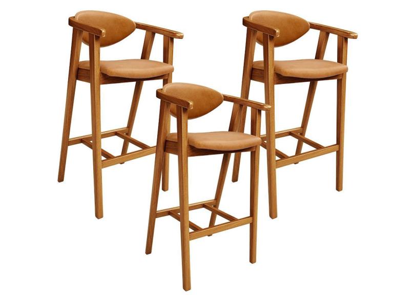 Kit 03 Banquetas Alta Cozinha Bancada Bar Sala de Jantar Fixa Cecília L02 Couríssimo Whisky - Lyam