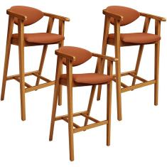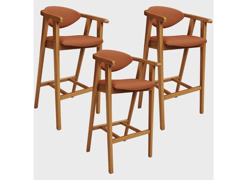 Kit 03 Banquetas Alta Cozinha Bancada Bar Sala de Jantar Fixa Cecília L02 Tecido Terracota - Lyam