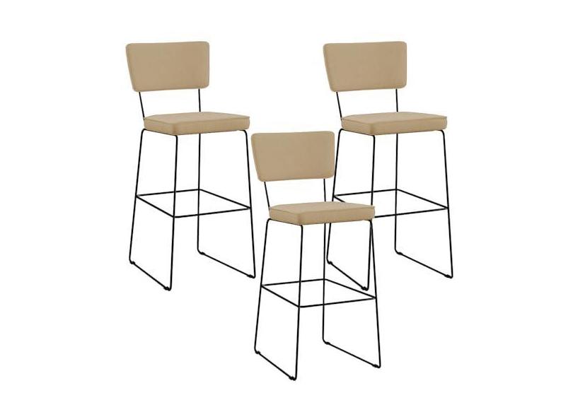 Kit 03 Banquetas Alta Cozinha Sala De Jantar Base Aço Fixa Allana L02 Linho Bege Escuro - Lyam Decor