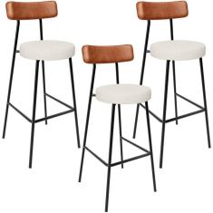 Kit 03 Banquetas Alta Cozinha Sala Jantar Milão L02 Couríssimo Preto Linho Champagne