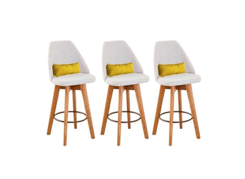 O menor preço encontrado no Brasil para Kit 03 Banquetas Alta Maya Giratória Com Encosto Linho Bege Claro e Almofada Sintético Amarelo - Aurora Line atualmente é R$ 2.699,53.