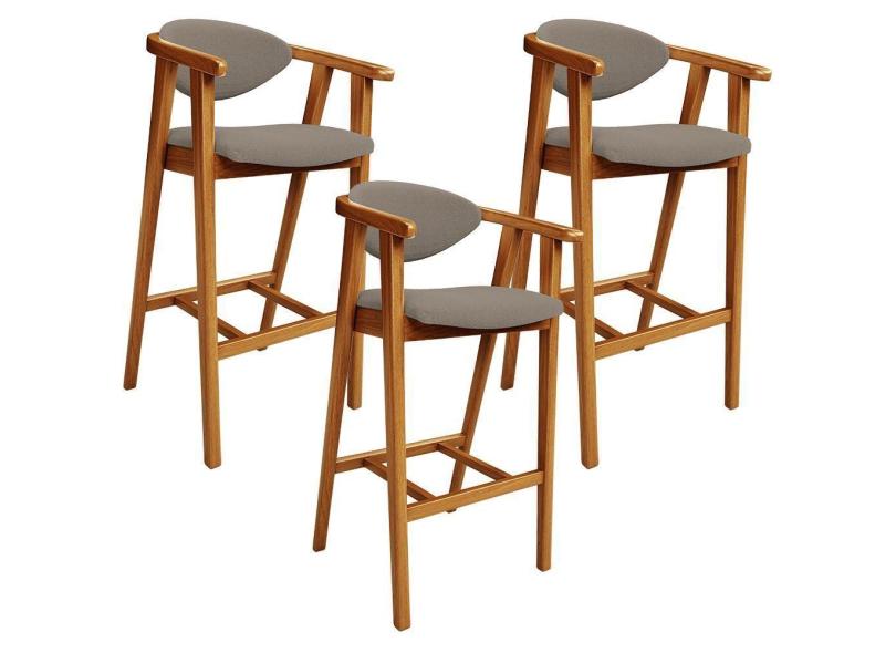 Kit 03 Banquetas Alta Para Cozinha Bancada Bar Sala De Jantar Fixa Cecília L02 Bouclê Bege