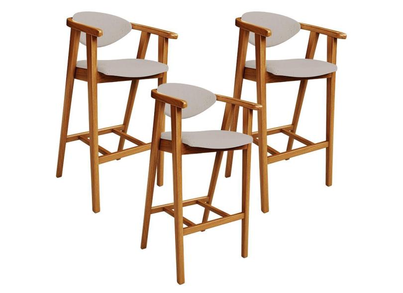 Kit 03 Banquetas Alta Para Cozinha Bancada Bar Sala de Jantar Fixa Cecília L02 Linho Bege - Lyam