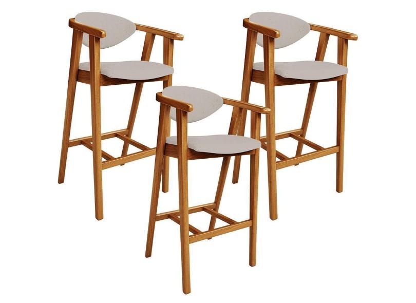Kit 03 Banquetas Alta Para Cozinha Bancada Bar Sala De Jantar Fixa Cecília L02 Linho Bege