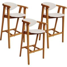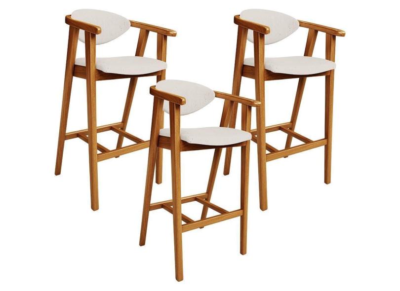 Kit 03 Banquetas Alta Para Cozinha Bancada Bar Sala De Jantar Fixa Cecília L02 Linho Cru