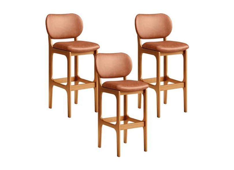 Kit 03 Banquetas Alta Para Cozinha Madeira Fixa Betta L02 Imbuia Couríssimo Camel - Lyam Decor