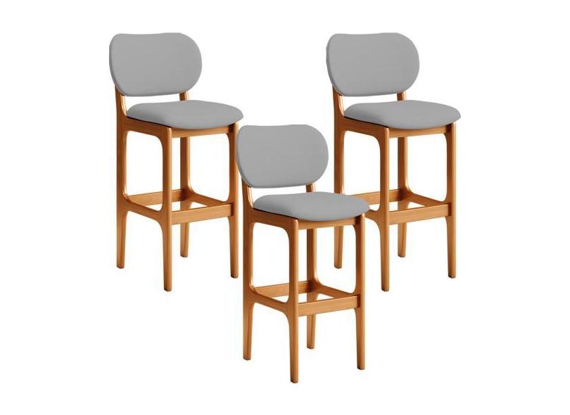 Kit 03 Banquetas Alta Para Cozinha Madeira Fixa Betta L02 Imbuia Facto