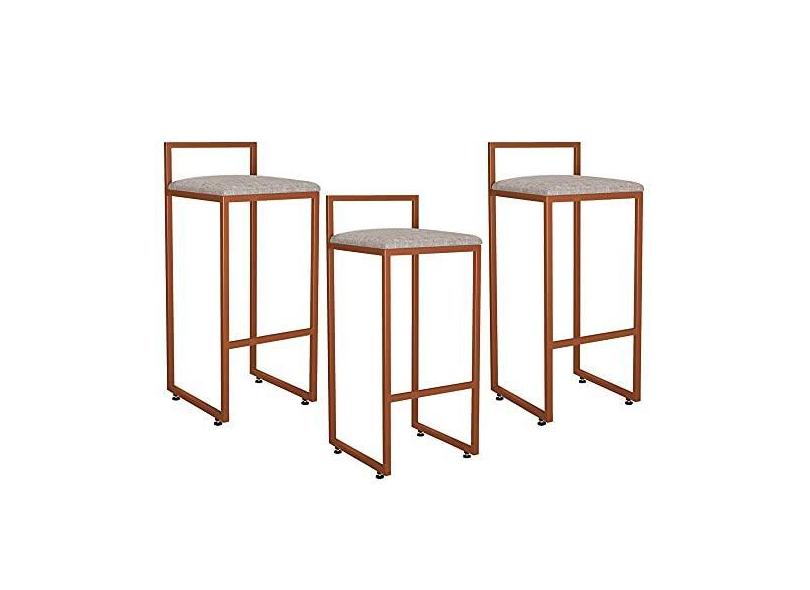 Kit 03 Banquetas Alta Para Cozinha Sala de Jantar Hanna L02 Bronze Linho Bege - Lyam Decor