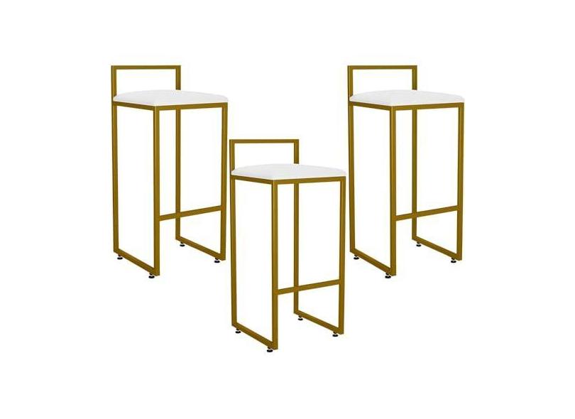 Kit 03 Banquetas Alta Para Cozinha Sala De Jantar Hanna L02 Dourado Corano Branco - Lyam Decor