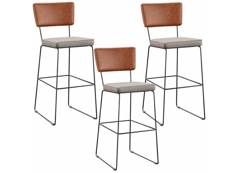 Kit 03 Banquetas Altas Cozinha Allana L02 Camel Linho Bege