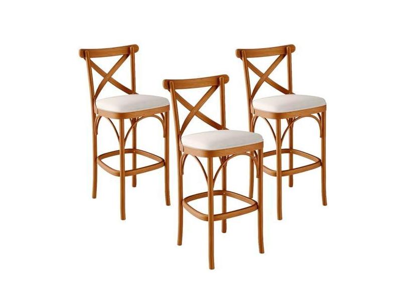 O menor preço encontrado no Brasil para Kit 03 Banquetas Altas Cozinha Bancada Bar Sala de Jantar Estofada Ávila L02 Linho Cru - Lyam atualmente é R$ 2.400,49.