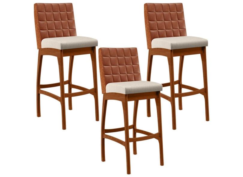 O menor preço encontrado no Brasil para Kit 03 Banquetas Altas Cozinha Sala De Jantar Fixa Mila B04 Couríssimo Camel Linho Cru - Lyam Decor atualmente é R$ 1.878,30.