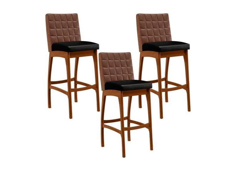 Kit 03 Banquetas Altas Cozinha Sala Jantar Fixa Mila B04 Corano Marrom