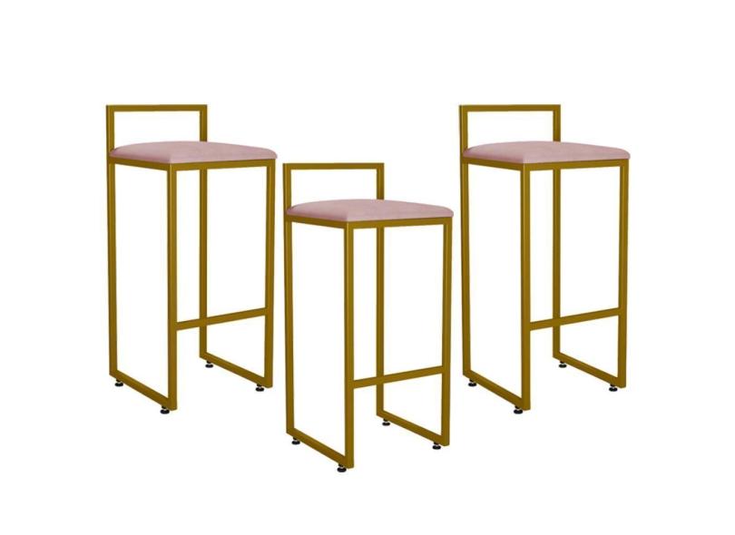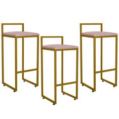 Kit 03 Banquetas Altas Hanna Dourado Suede Rosê