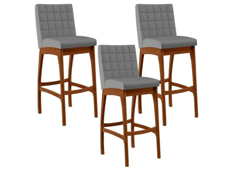 Kit 03 Banquetas Altas Mila Facto Cinza Fosco