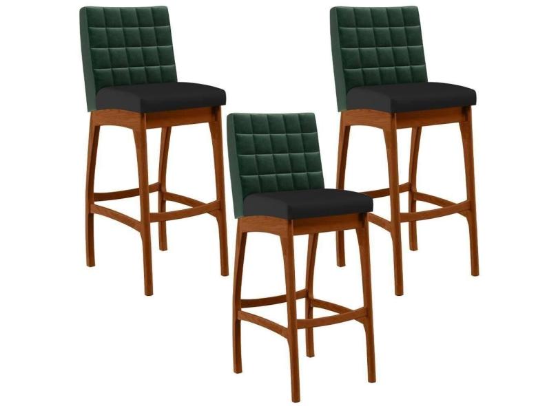 Kit 03 Banquetas Altas Mila Facto Verde Musgo Corano Preto